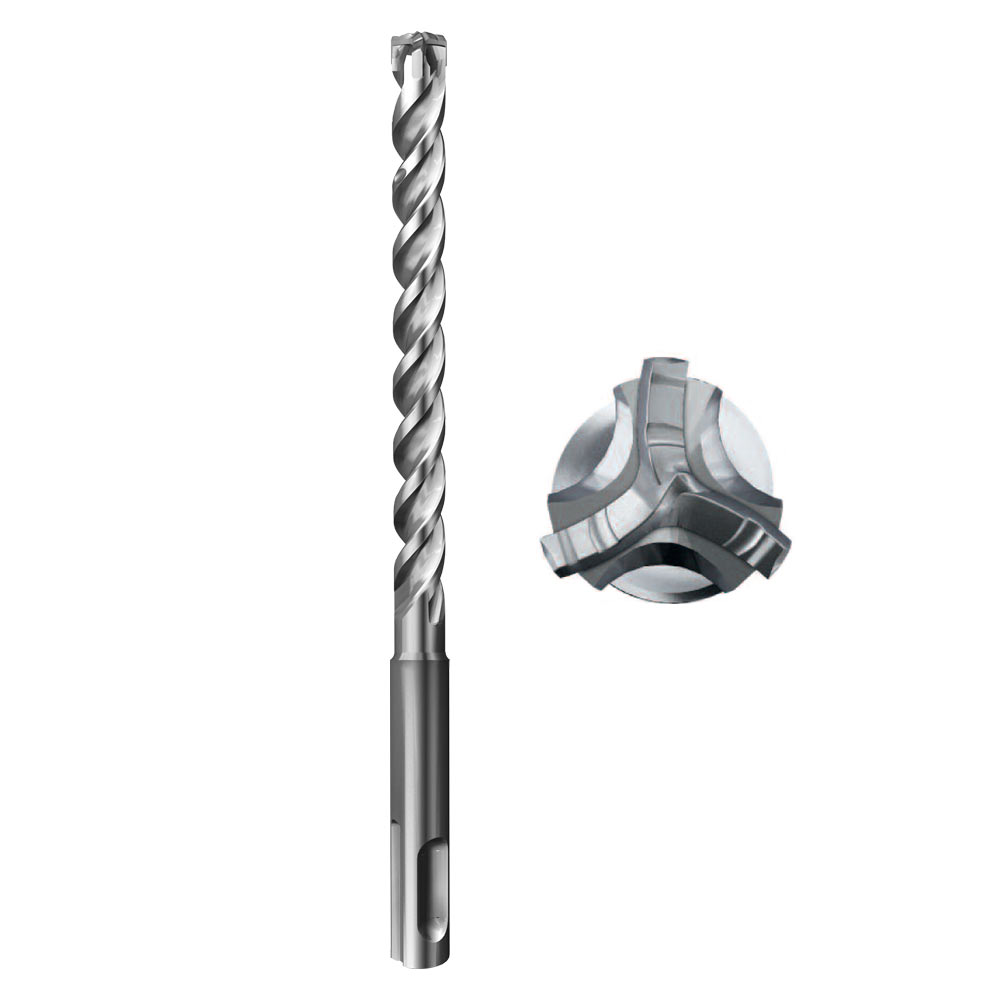 Бур TERMOCLIP TJ SDS+ с тройной режущей кромкой наиболее эффективен для ударного сверления в армированном железобетоне. Самый продолжительный срок службы благодаря чрезвычайно износостойкому однофазному твердосплавному составу. При рассверливании арматуры срок службы бура TJ в девять раз превышает срок службы двухкромочного сверла среднего качества.