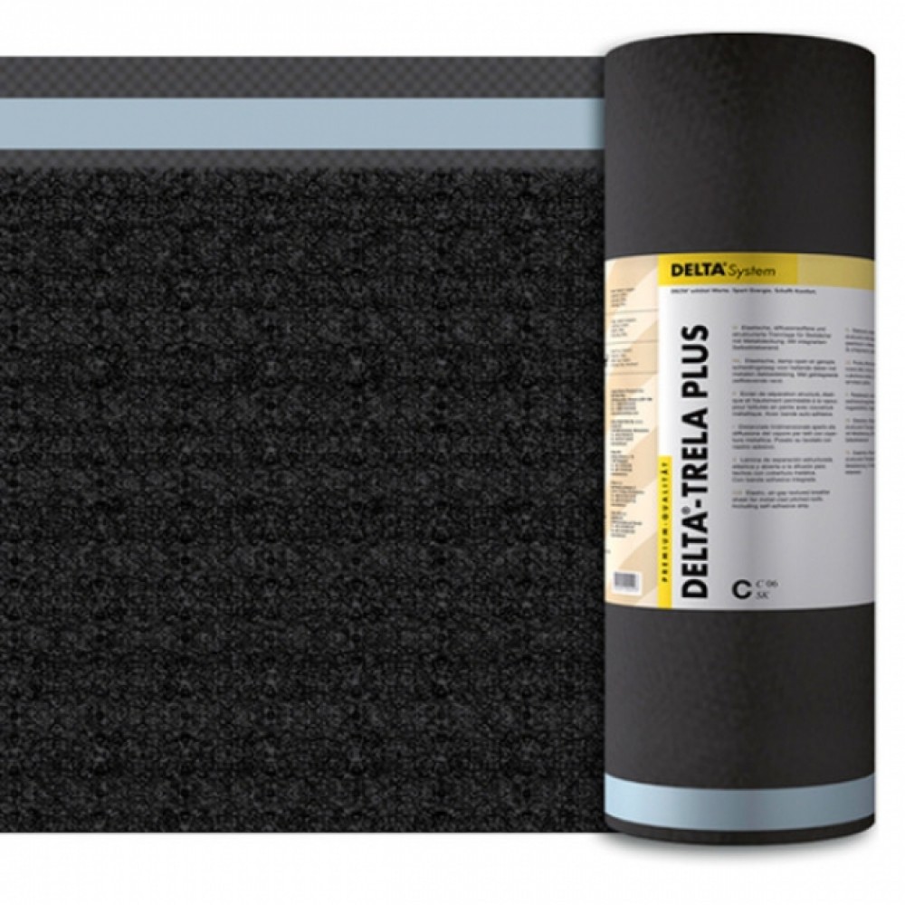 DELTA®-TRELA объёмная диффузионная мембрана/структурированная разделительная прослойка (ОДМ) используется с металлическими фальцевыми и штучными кровлями (из стали, меди, цинка, алюминия) и с фасадами, облицованными металлом. Обеспечивает скольжение металла при температурных деформациях. Трёхмерная структура высотой 8 мм из ориентированных волокон препятствует образованию конденсационной влаги на нижней стороне металлической кровли. Благодаря постоянному отводу конденсата мембрана эффективно защищает кровлю от коррозии.