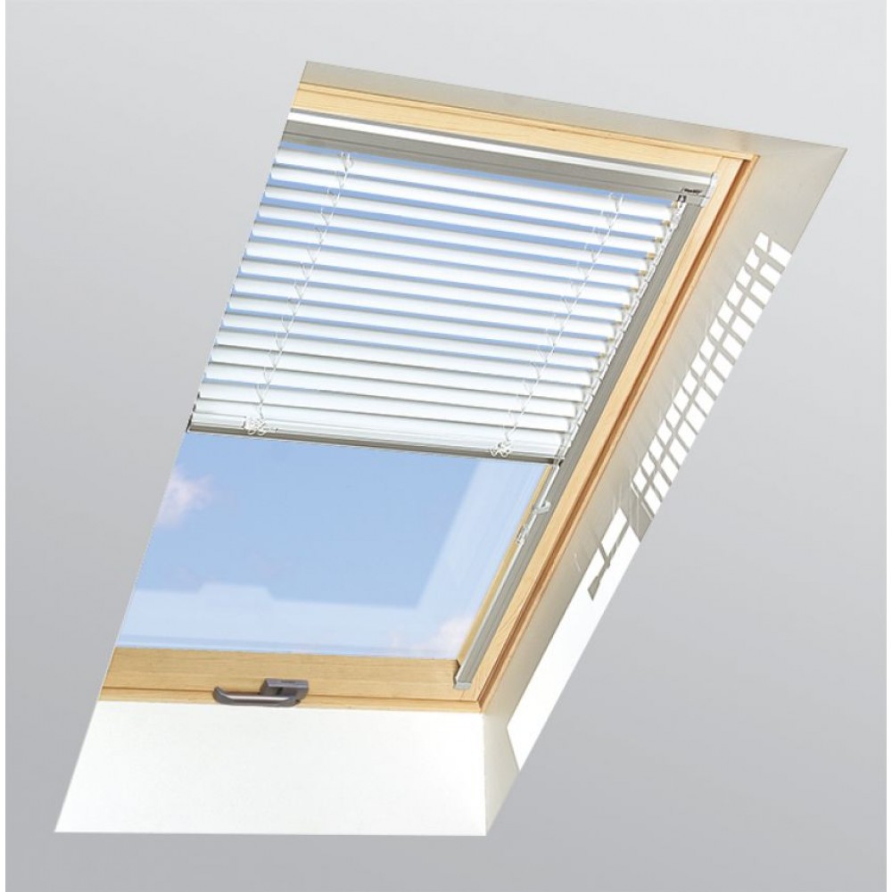 Жалюзи FAKRO AJP 140 78*160 изготовлены из алюминиевых ламелей, окрашенных в классический белый цвет. Наличие боковых направляющих исключает провисание планок.