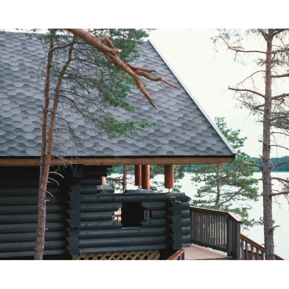 KATEPAL Jazzy - шестигранная гибкая черепица, формирующая многомерный, рельефный и переливающийся вид кровли за счет смешения черных и окрашенных гранул, придавая эксклюзивный образ дому. Натуральные цвета каменных гранул верхней поверхности гонта KATEPAL Jazzy обеспечивают разнообразие оттенков и длительный период эксплуатации мягкой кровли, а игра теней придает кровле непревзойдённый рельефный вид. Слой сплошного самоклеящегося сбс-модифицированного битума нанесенного на нижнюю поверхность гонта отвечает за 100% герметичность кровли, а также существенно снижает затраты на монтаж черепицы фирмы KATEPAL. Для ценителей строгих архитектурных решений, гибкая черепица KATEPAL Jazzy будет идеальным выбором. При укладке подкладочного материала по всей поверхности кровли гарантия производителя – 25 лет.