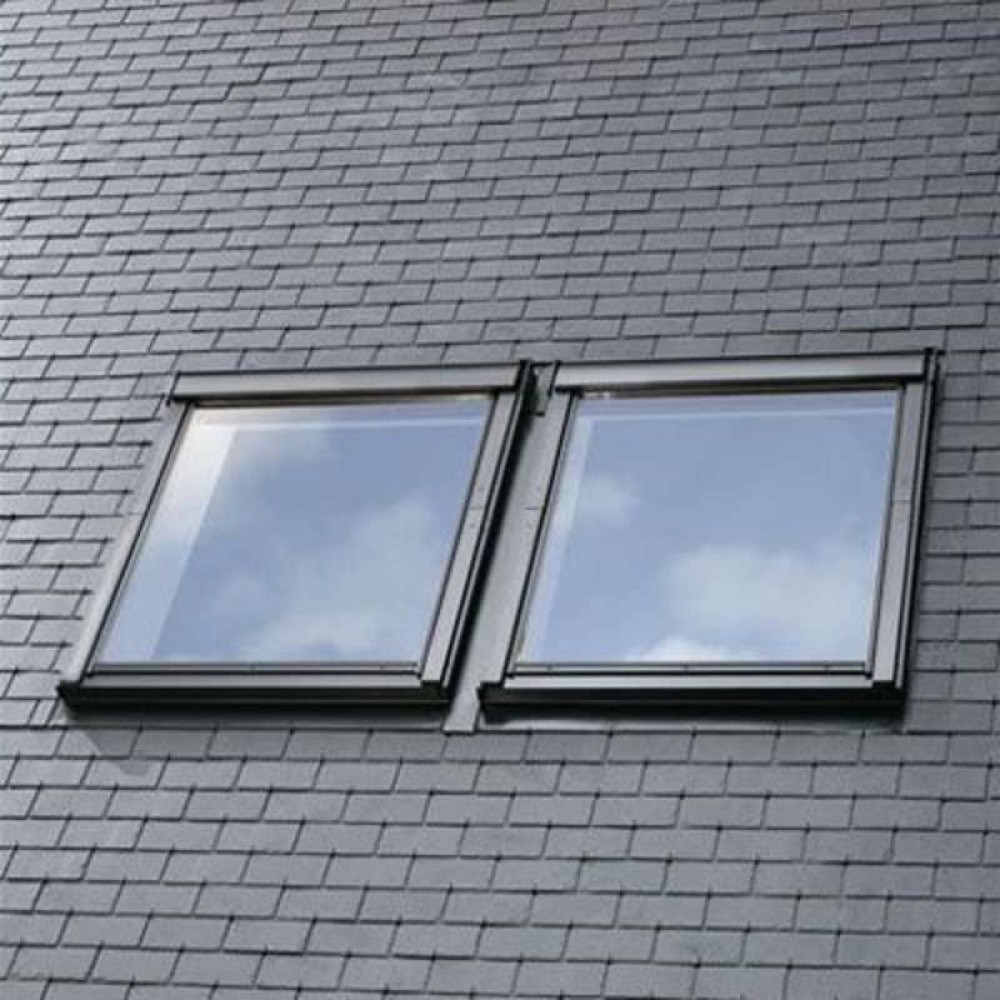 Комплект VELUX EKS PK08 2021M состоит из двух окладов для установки по горизонтали бок о бок одинаковых по высоте мансардных окон серии PREMIUM на кровлях из плоского материала, толщиной до 16 мм. Оклады изготовлены из алюминия, цвет RAL 7043. В комплект поставки входит гидро-теплоизоляция BDX 2000.