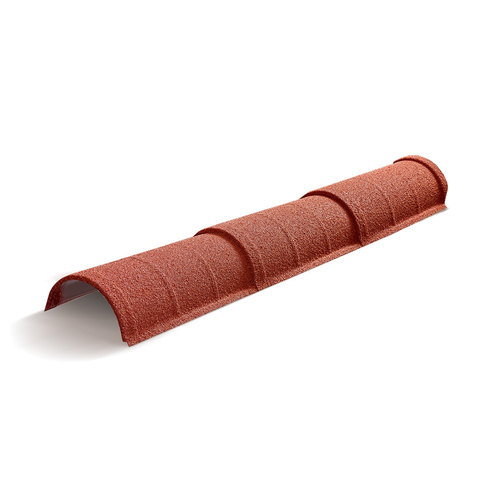 Конек полукруглый тройной АЕРОДЕК цвет Терракота (02) – применяется для оформления коньков и хребтов (ребер) кровли. Применяется со всеми коллекциями композитной черепицы AeroDek.