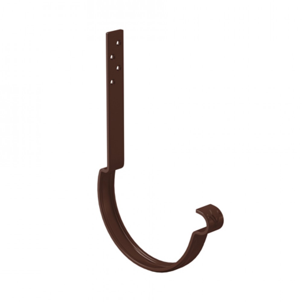 Крюк крепления желоба длинный AQUASYSTEM, L=140мм, D150/100 мм, RAL 8017 предназначен для крепления водосточного желоба и обеспечения его необходимого уклона для движения воды в необходимом направлении. Крюк изготовлен из цельнометаллической стали толщиной 4 мм и имеет дополнительное ребро жесткости. Установка осуществляется на верхнюю плоскость стропил или плоскость сплошного основания до момента укладки кровельного покрытия. Данный вид установки позволяет водосточной системе выдерживать большие силовые нагрузки.