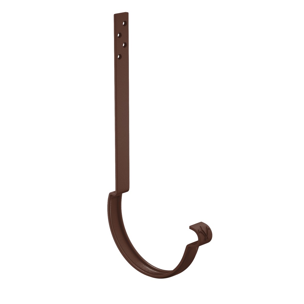 Крюк крепления желоба удлиненный AQUASYSTEM, L=220мм, D150/100 мм, PURAL MATT RAL 8017 предназначен для крепления водосточного желоба и обеспечения его необходимого уклона для движения воды в необходимом направлении. Крюк изготовлен из цельнометаллической стали толщиной 4 мм и имеет дополнительное ребро жесткости. Поставляется с комплектом креплений. Устанавливается по аналогии с длинным крюком на верхнюю плоскость стропил или плоскость сплошного основания до момента укладки кровельного покрытия. Удлиненный крюк крепления желоба применяется в тех случаях, когда длинного крюка из-за особенностей кровли не хватает. Данный вид установки позволяет водосточной системе выдерживать большие силовые нагрузки.