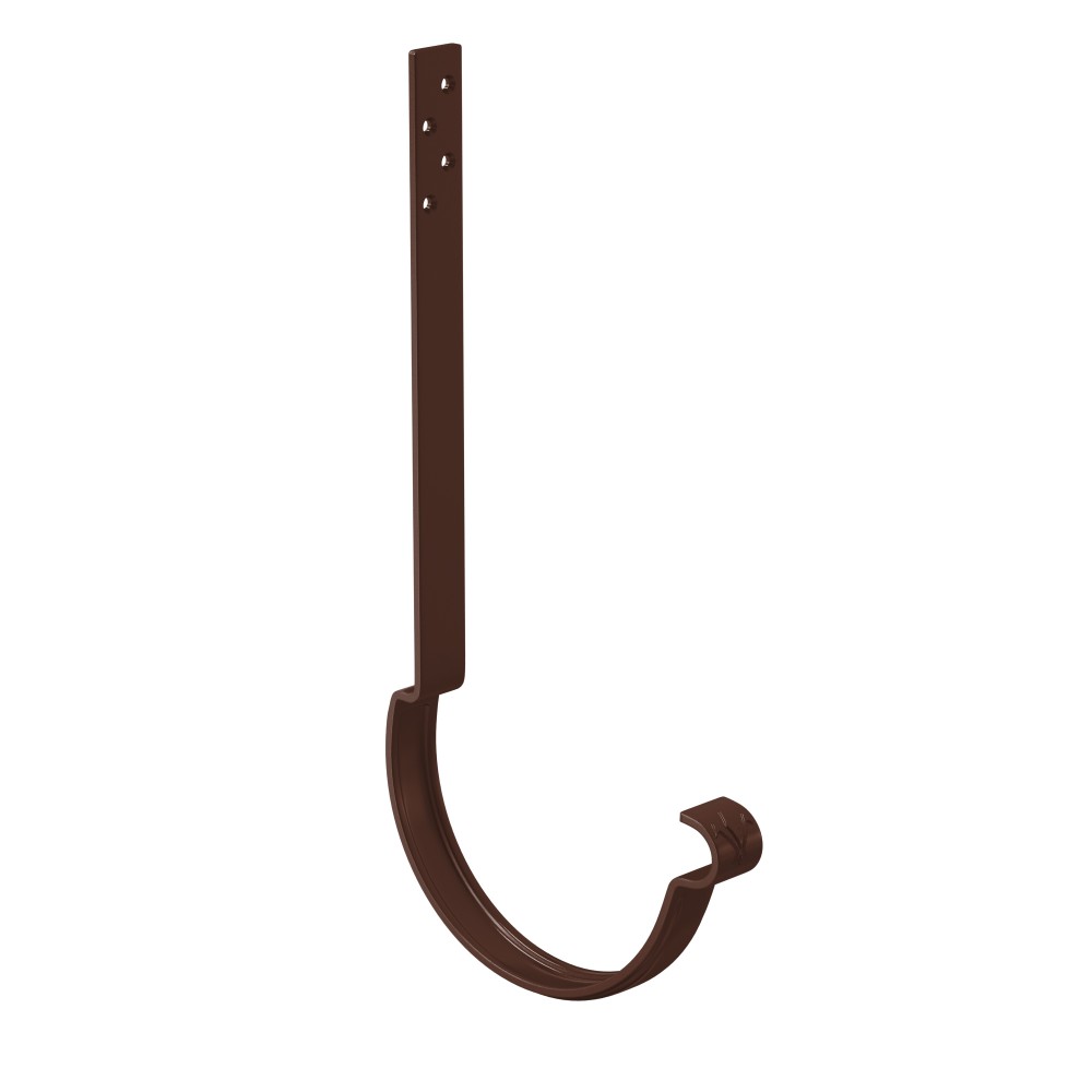 Крюк крепления желоба удлиненный AQUASYSTEM, L=220мм, D150/100 мм, PURAL RAL 8017 предназначен для крепления водосточного желоба и обеспечения его необходимого уклона для движения воды в необходимом направлении. Крюк изготовлен из цельнометаллической стали толщиной 4 мм и имеет дополнительное ребро жесткости. Поставляется с комплектом креплений. Устанавливается по аналогии с длинным крюком на верхнюю плоскость стропил или плоскость сплошного основания до момента укладки кровельного покрытия. Удлиненный крюк крепления желоба применяется в тех случаях, когда длинного крюка из-за особенностей кровли не хватает. Данный вид установки позволяет водосточной системе выдерживать большие силовые нагрузки.