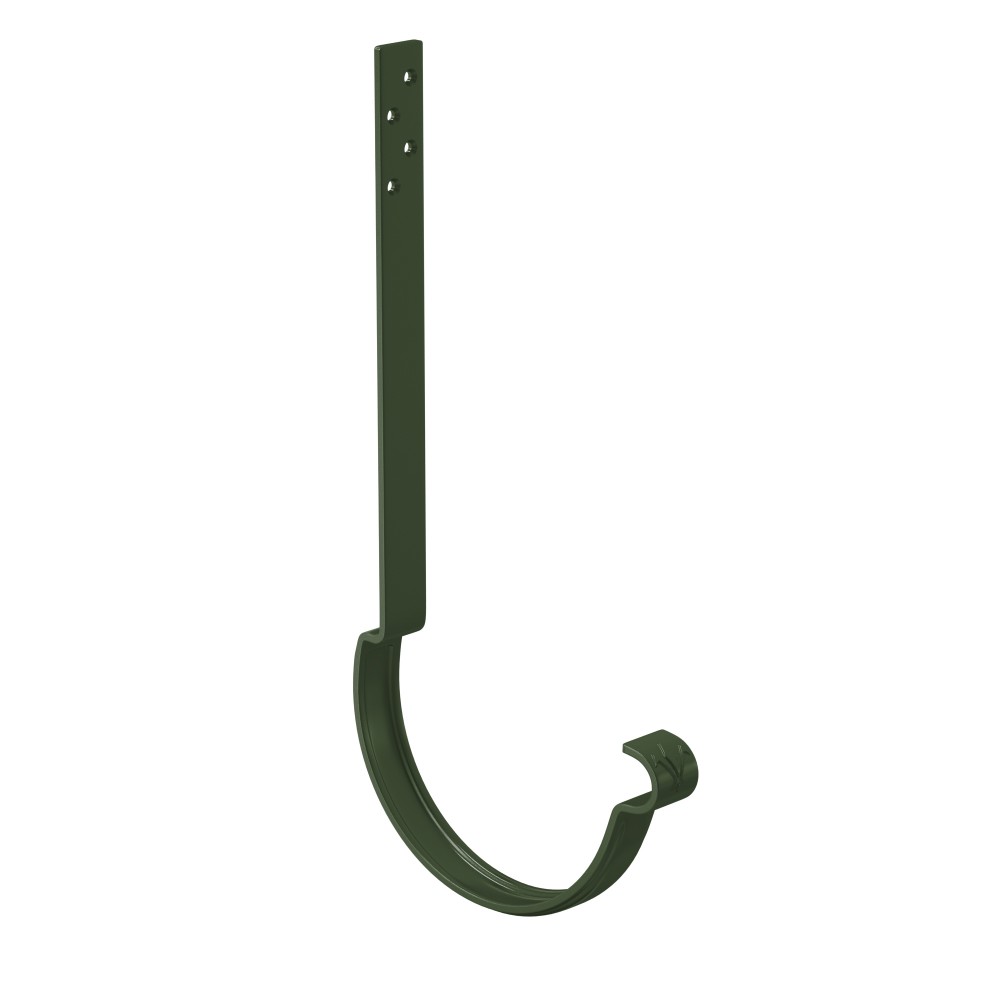 Крюк крепления желоба удлиненный AQUASYSTEM, L=220мм, D150/100 мм, PURAL RR 11 предназначен для крепления водосточного желоба и обеспечения его необходимого уклона для движения воды в необходимом направлении. Крюк изготовлен из цельнометаллической стали толщиной 4 мм и имеет дополнительное ребро жесткости. Поставляется с комплектом креплений. Устанавливается по аналогии с длинным крюком на верхнюю плоскость стропил или плоскость сплошного основания до момента укладки кровельного покрытия. Удлиненный крюк крепления желоба применяется в тех случаях, когда длинного крюка из-за особенностей кровли не хватает. Данный вид установки позволяет водосточной системе выдерживать большие силовые нагрузки.