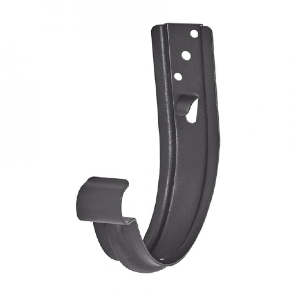 Крюк крепления желоба универсальный AQUASYSTEM, D125/90 мм, PURAL MATT RR 23 (маренго) предназначен для крепления водосточного желоба и обеспечения его необходимого уклона для движения воды в необходимом направлении. Крюк изготовлен из цельнометаллической стали толщиной 4 мм и имеет дополнительное ребро жесткости. Поставляется с комплектом креплений. Устанавливается по аналогии с коротким крюком на лобовую доску или торцевые плоскости стропил. Универсальный крюк крепления желоба можно использовать в качестве короткого крюка либо при использовании со специальным удлинителем в качестве длинного крюка.