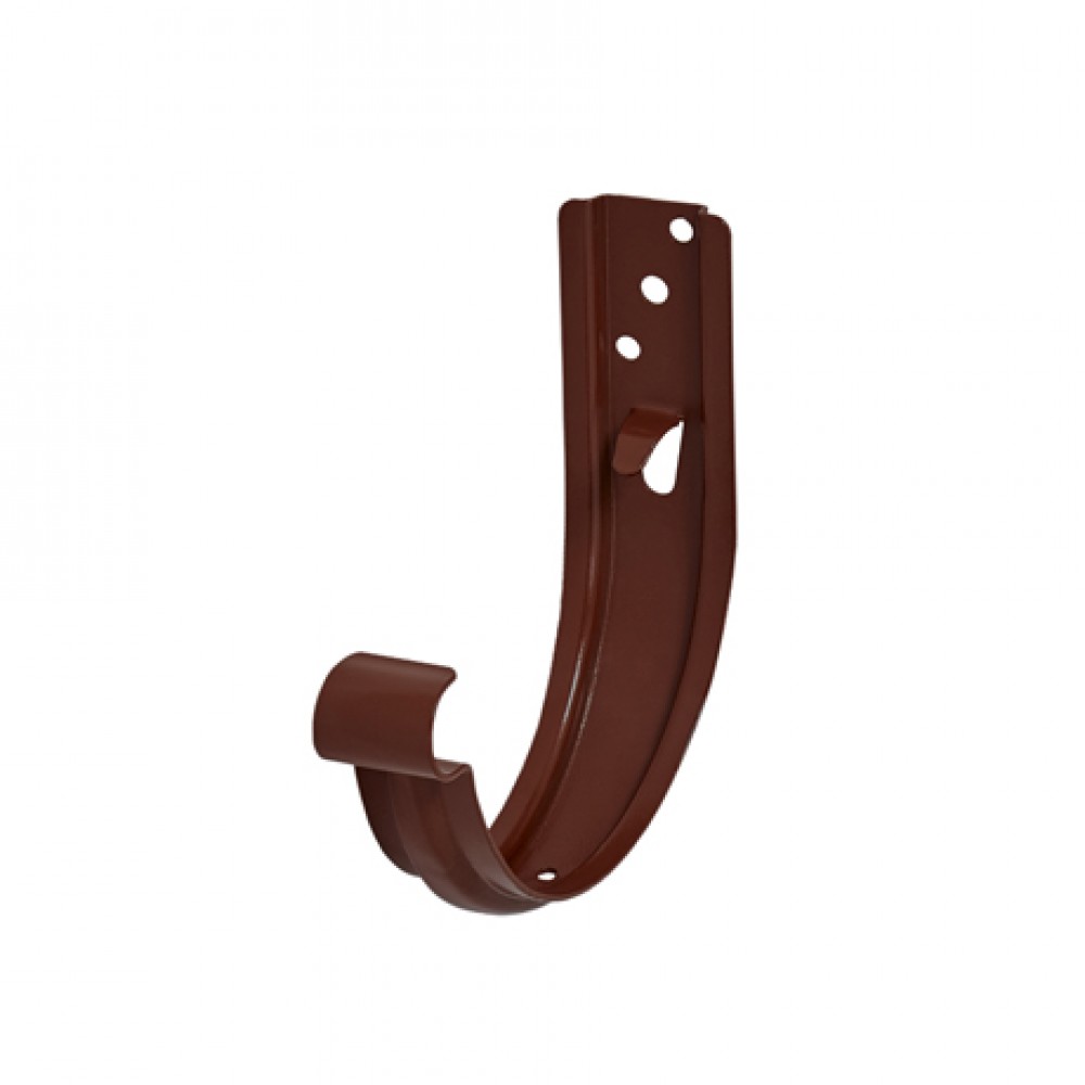 Крюк крепления желоба универсальный AQUASYSTEM, D125/90 мм, RAL 8017 предназначен для крепления водосточного желоба и обеспечения его необходимого уклона для движения воды в необходимом направлении. Крюк изготовлен из цельнометаллической стали толщиной 4 мм и имеет дополнительное ребро жесткости. Поставляется с комплектом креплений. Устанавливается по аналогии с коротким крюком на лобовую доску или торцевые плоскости стропил. Универсальный крюк крепления желоба можно использовать в качестве короткого крюка либо при использовании со специальным удлинителем в качестве длинного крюка.