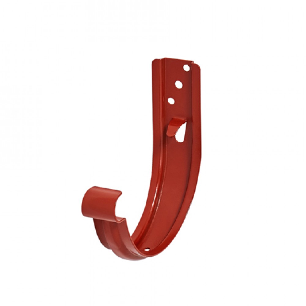 Крюк крепления желоба универсальный AQUASYSTEM, D125/90 мм, RR 29 (бургундский) предназначен для крепления водосточного желоба и обеспечения его необходимого уклона для движения воды в необходимом направлении. Крюк изготовлен из цельнометаллической стали толщиной 4 мм и имеет дополнительное ребро жесткости. Поставляется с комплектом креплений. Устанавливается по аналогии с коротким крюком на лобовую доску или торцевые плоскости стропил. Универсальный крюк крепления желоба можно использовать в качестве короткого крюка либо при использовании со специальным удлинителем в качестве длинного крюка.