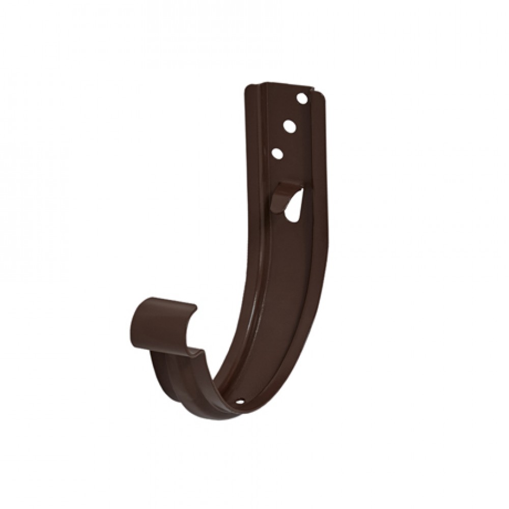 Крюк крепления желоба универсальный AQUASYSTEM, D125/90 мм, RR 32 (темно-коричневый) предназначен для крепления водосточного желоба и обеспечения его необходимого уклона для движения воды в необходимом направлении. Крюк изготовлен из цельнометаллической стали толщиной 4 мм и имеет дополнительное ребро жесткости. Поставляется с комплектом креплений. Устанавливается по аналогии с коротким крюком на лобовую доску или торцевые плоскости стропил. Универсальный крюк крепления желоба можно использовать в качестве короткого крюка либо при использовании со специальным удлинителем в качестве длинного крюка.