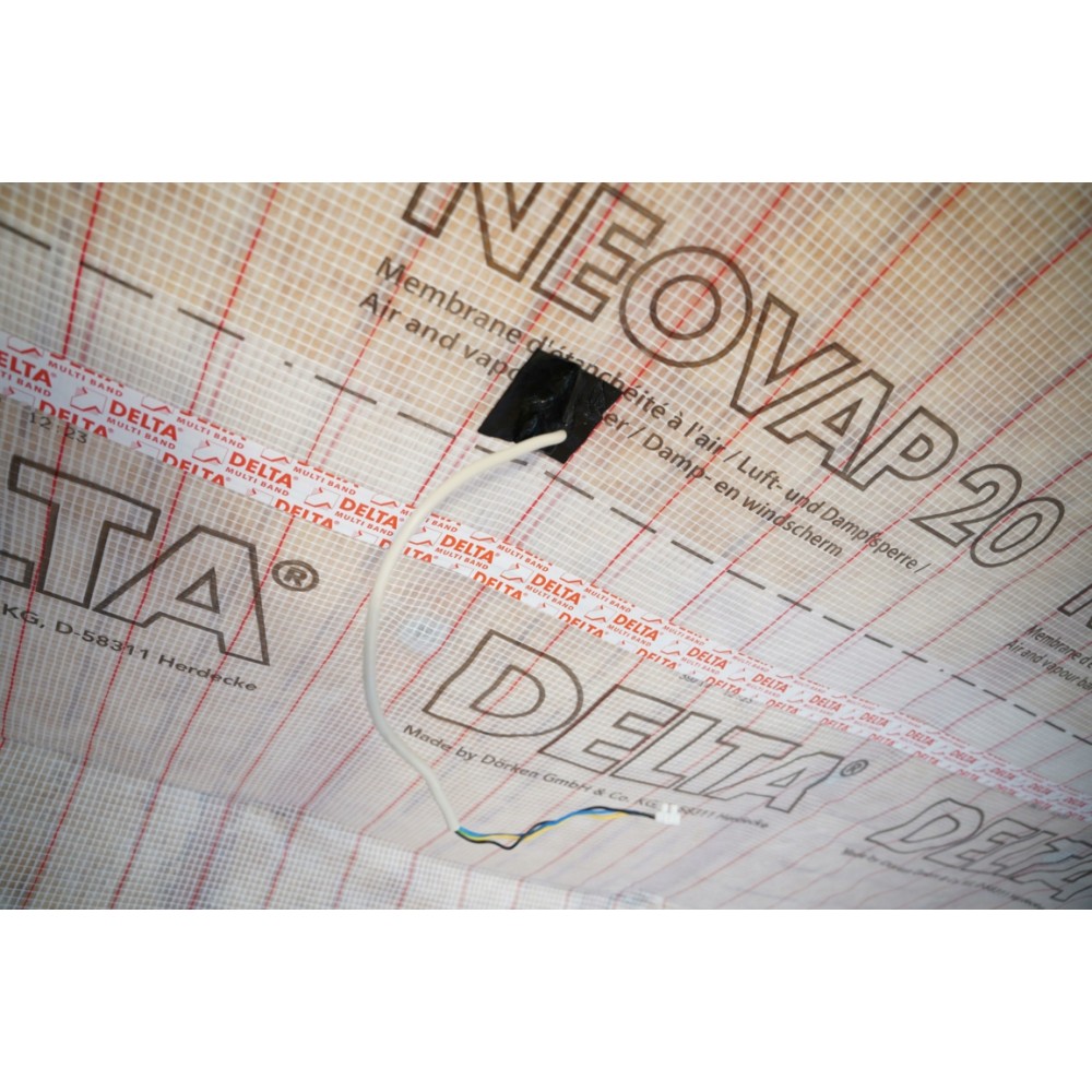 Лента DELTA FLEXX BAND FG 80 предназначена для герметичного уплотнения кровельных проходок, проёмов мансардных и фасадных окон, электропроводки, угловых соединений, совместима с любыми паро- и гидроизоляционными плёнками DELTA®. Лента обладает высокой растяжимостью и адгезией к основаниям из твёрдого пластика, гладкой древесины, металла, фанеры, гипсокартона, ГВЛ, ДСП, ОСП, штукатурки, гладкого бетона. Нагрев ленты для приклейки не требуется, а защитный лайнер разделён на две части для удобства применения. Ширина ленты 80 мм позволяет выполнить надёжные уплотнения любых деталей.