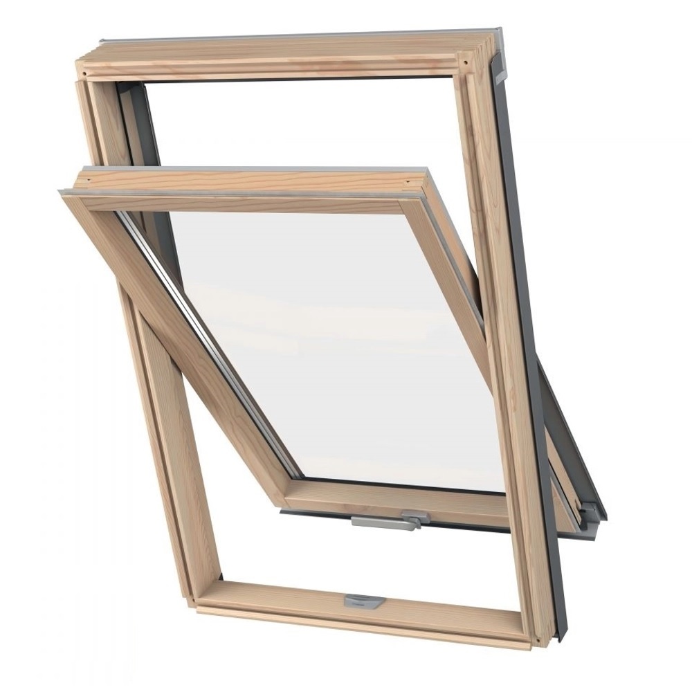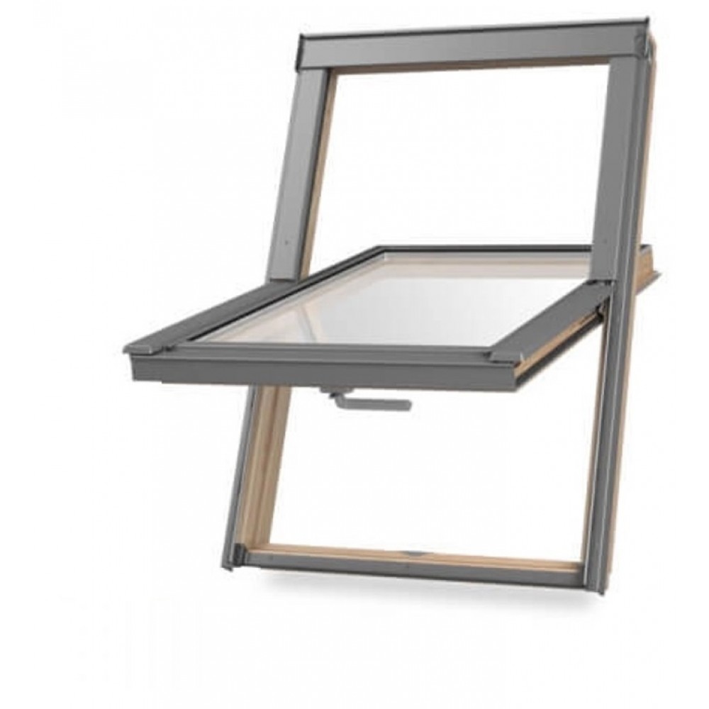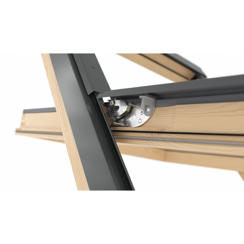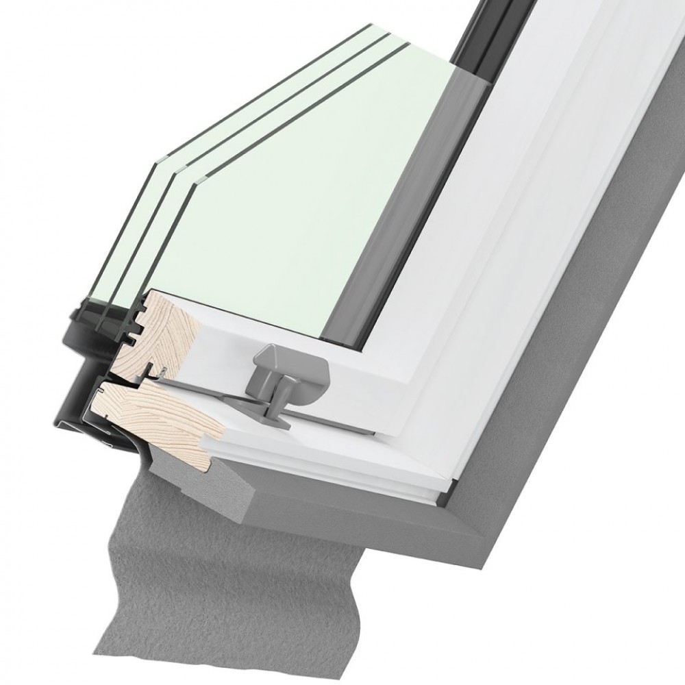 Мансардное окно DAKEA ULTIMA KEV P6A B1800 изготовлено из ламинированной сосны камерной сушки (защита от насекомых, двухслойный лак на водной основе). Двухкамерный усовершенствованный стеклопакет, заполненный Криптоном. Внешнее закаленное 6 мм защитное стекло, ламинированное внутреннее 2*3 мм стекло. Два слоя теплоотражающих и солнцезащитных покрытий. Усовершенствованная система уплотнителей. Окна открывается по центральной оси, ручка расположена на нижней части рамы. Ручка с возможностью установки окна в режим проветривания. Вентиляционный клапан, встроенный в верхнюю часть рамы, позволяет проветривать помещение при закрытом окне. Накладки - алюминий, цвет RAL 7043.