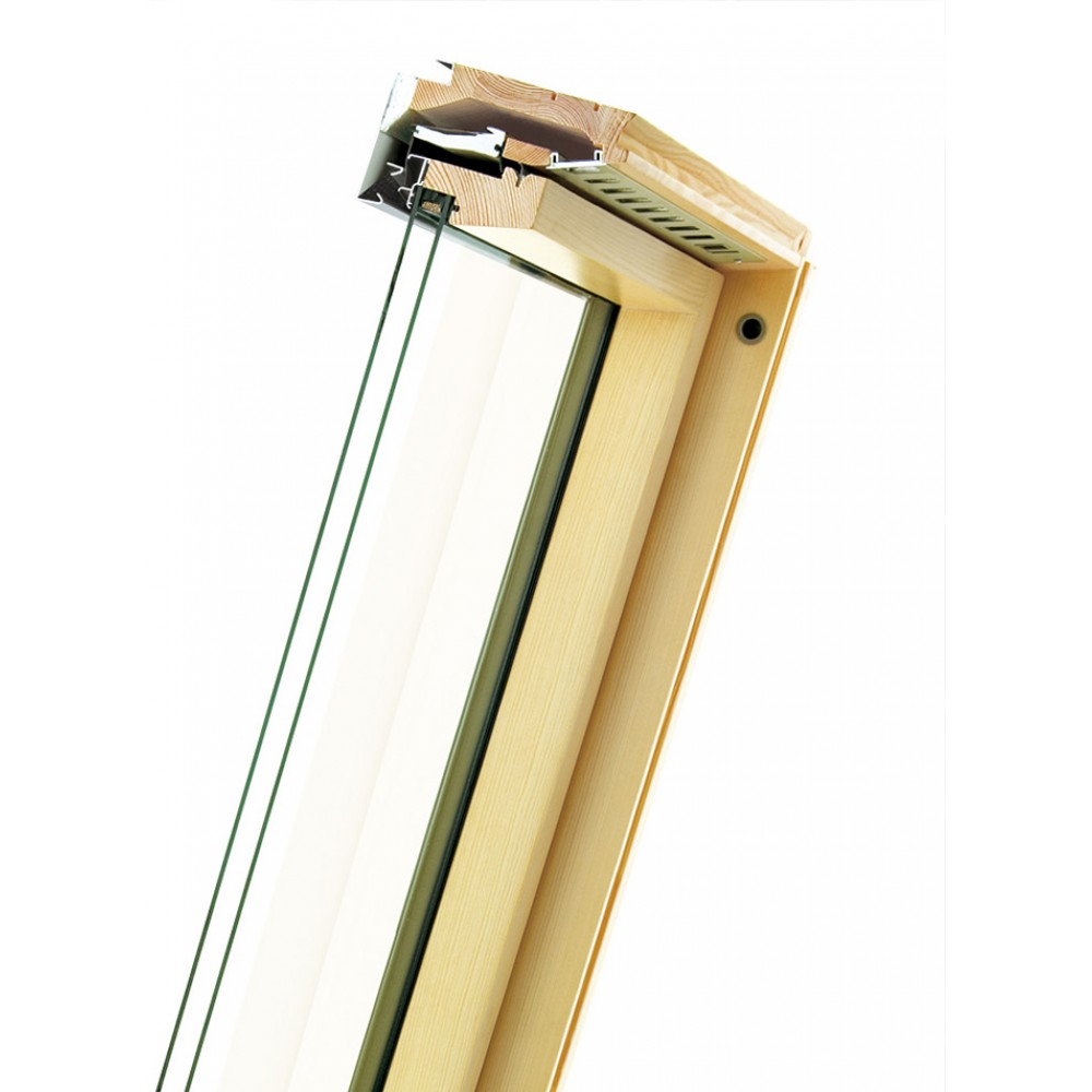 FAKRO FTS-V U2 (V22), 1340*980 мм со среднеповоротным открыванием – базовая модель мансардного окна совмещает в себе привычный дизайн серии STANDART и расширенную функциональность серии PROFI: стандартные функции освещения и проветривания, улучшенные параметры теплосбережения, повышенная безопасность. Благодаря фрикционным петлям, располагающимся в центральной части оконной коробки, створку окна можно оставлять в позиции наклона, а также поворачивать вокруг оси на 180°, что делает удобным мытье внешнего стекла.