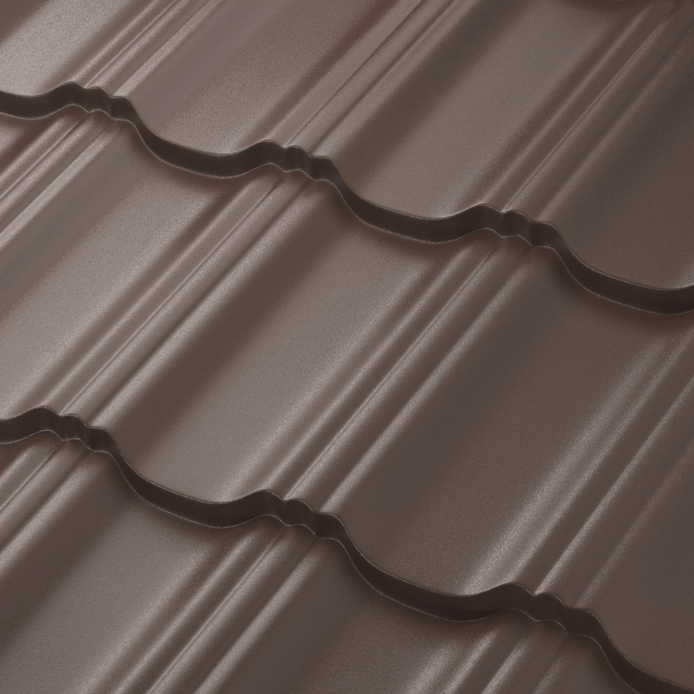 Металлочерепица AQUASYSTEM Гётеборг изготовлена из оцинкованной стали с полимерным покрытием PE Rooftop Glance RR 32, толщина стали 0,50 мм (0,53 мм с покр.), цинк 180 гр/кв.м. Высота профиля – 20 мм. Ширина листа – 1205 мм.