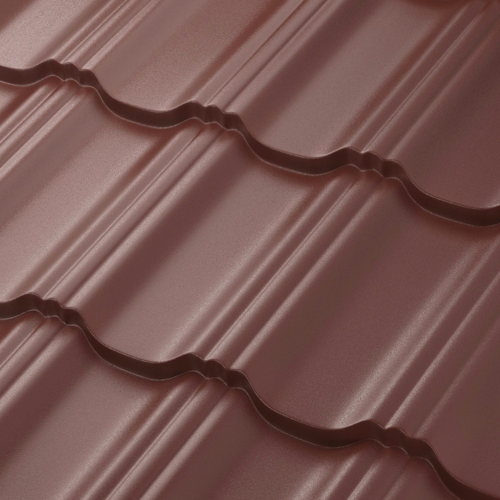 Металлочерепица AQUASYSTEM Гётеборг изготовлена из оцинкованной стали с полимерным покрытием PE Rooftop Glance RAL 8017, толщина стали 0,50 мм (0,53 мм с покр.), цинк 275 гр/кв.м. Высота профиля – 20 мм. Ширина листа – 1205 мм.