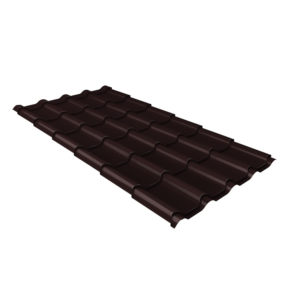 Металлочерепица Grand Line Kamea (Камея) RAL 8017 - современный премиум-класс, крупный профиль максимально приближен к натуральной черепице. Черепица производится из оцинкованной стали c текстурированным матовым покрытием на основе полиэстера Velur. Покрытие разработано с использованием новейших технологий, защищено цинк-алюминиевым покрытием Galfan, не содержит шестивалентного хрома и тяжелых металлов, обратная сторона окрашена в тон лицевого покрытия (TwinColor). Толщина стали 0,5 мм, толщина покрытия 35 мкм, ZA 255 гр/кв.м. Гарантия 25 лет.