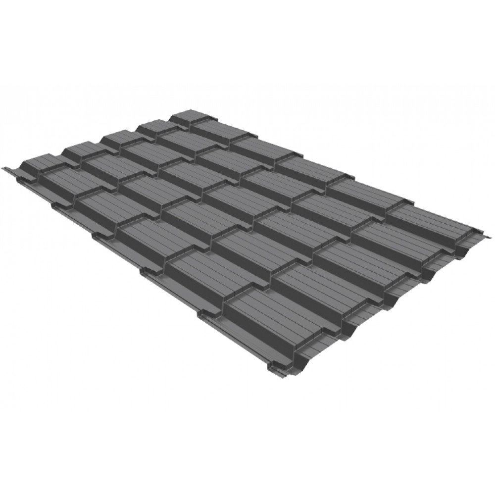 Металлочерепица Grand Line Quadro Profi (Квадро Профи) RAL 7005 – высокий профиль со строгой геометрией рисунка прямоугольной формы напоминающий броню. Черепица производится из оцинкованной стали с полимерным покрытием PE (полиэстер), толщина стали 0,45 мм, толщина покрытия 25 мкм, цинк 60-100 гр/кв.м. Гарантия 10 лет.