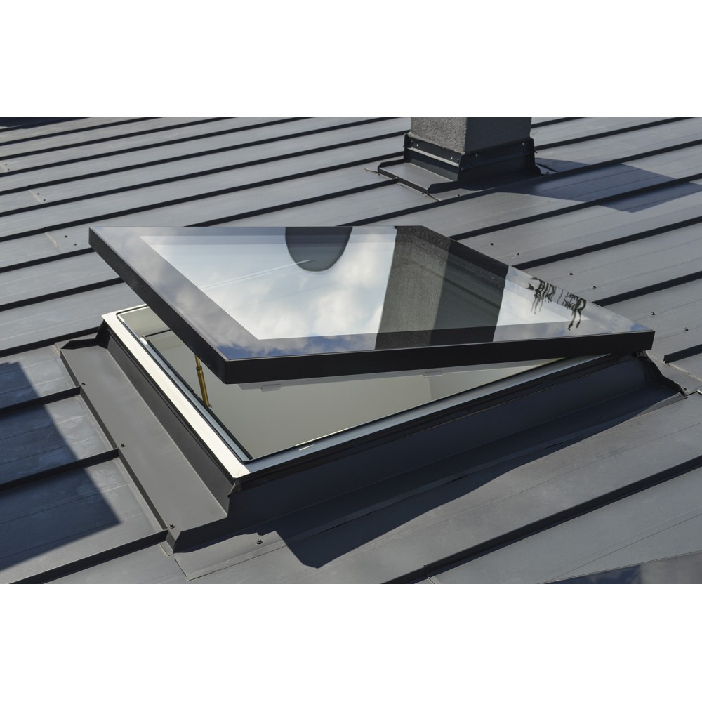 Зенитное окно FAKRO DEF-D U6, 600*600 мм отличается высокими теплоизоляционными параметрами и современным дизайном. Створка открывается на 15 см. Применение нового светоотражающего стеклопакета «Эффект зеркала» снижает уровень нагревания, повышает эстетический вид окна, а также ограничивает видимость с наружной стороны. Встроенная система Z-Wave позволяет управлять окном дистанционно. В комплект поставки входит блок питания и датчик дождя (пульт приобретается отдельно).