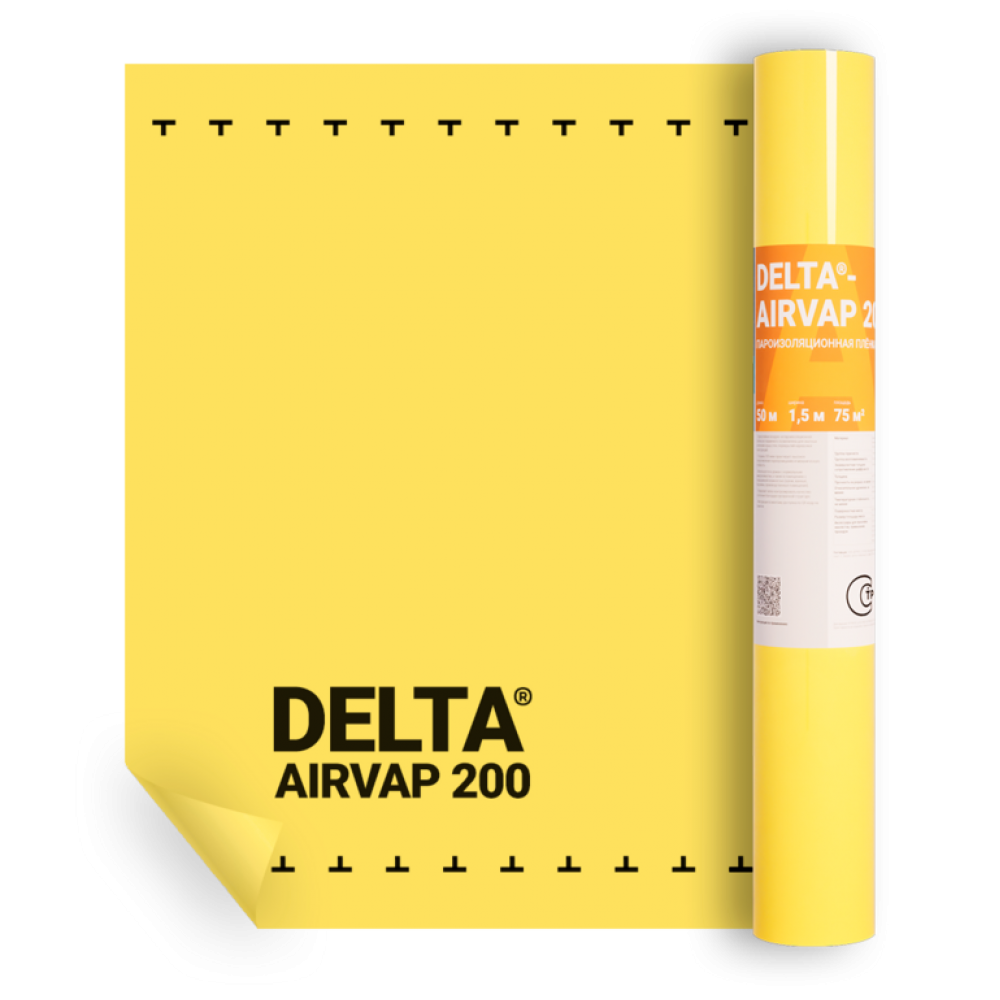 DELTA AIRVAP 200, 50*1,5 м - классическая пароизоляционная плёнка из специальных металлоценовых полиэтиленов для стен, перекрытий, скатных и плоских крыш со значением Sd 100 м. Плёнка выполнена методом соэкструзии, при которой несколько различных полимеров одновременно выдавливаются через одно сопло, создавая многослойную плёнку с уникальными свойствами.