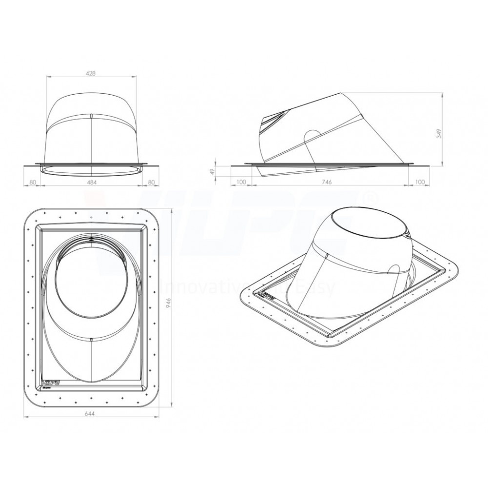 Проходной элемент PIIPPU NO.2 предназначен для герметизации вывода на кровлю круглых металлических теплоизолированных дымовых труб диаметром 280-380 мм. Монтируется на кровлях из битумной (гибкой) черепицы.
