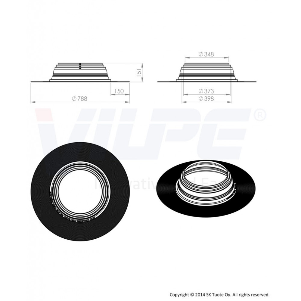 Резиновый уплотнитель VILPE FELT-ROOFSEAL No8 Ø 350-400 мм предназначен для герметичной проводки труб, опор рекламных щитов, флагштоков, кабелей и т.д. через битумную кровлю. Гибкий уплотнитель из EPDM-резины допускает тепловые и механические колебания, герметизируя отверстие в кровле. Запатентованное рифление и специальная обработка фланца обеспечивают надежное соединение с битумным материалом и максимально большую площадь поверхности уплотнения. Ширина фланца 150 мм соответствует Европейским строительным нормам. Комплектуются металлическими хомутами STAINLESS. Уплотнители рекомендуется использовать на плоских кровлях (уклон < 11,5°).