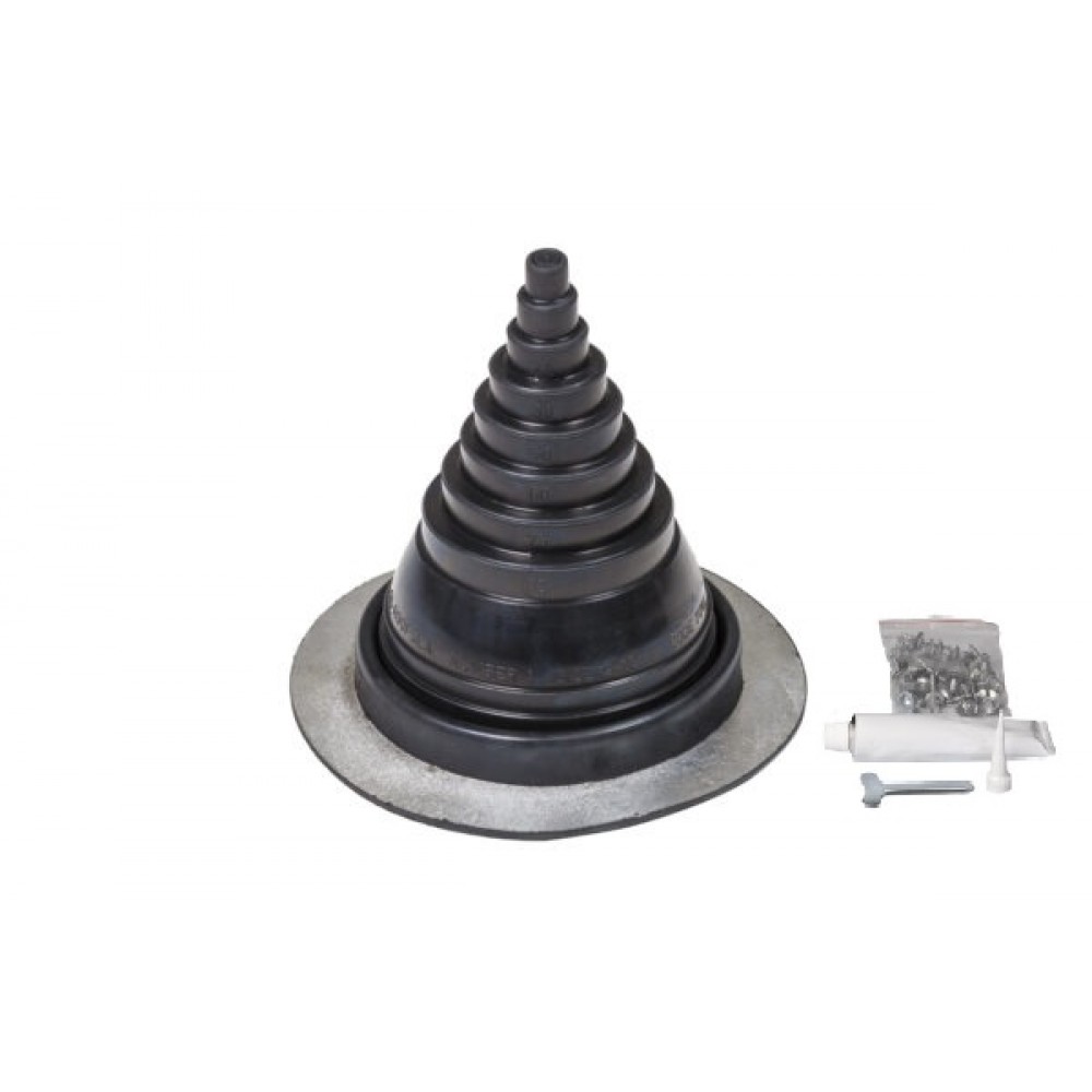 Резиновый уплотнитель ROOFSEAL-1 предназначен для герметичной проводки труб, опор рекламных щитов, флагштоков, кабелей и т.д. диаметром 12-90 мм на кровлях из металлочерепицы.