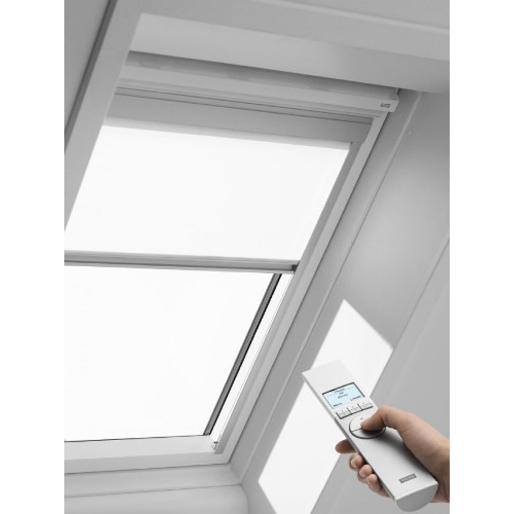 Штора рулонная с электроприводом VELUX RML CK04 1028S белого цвета с дистанционным управлением и питанием от сети, изготовлена из полиэстера устойчивого к загрязнениям. Поставляется без пульта. Управление шторой осуществляется с помощью сенсорного пульта, который поставляется с мансардными окнами VELUX INTEGRA. При необходимости рулонную штору можно поднять и опустить вручную с помощью ручки-планки. При установке на мансардные окна без электрооборудования, дополнительно приобретается система управления VELUX KUX 110.
