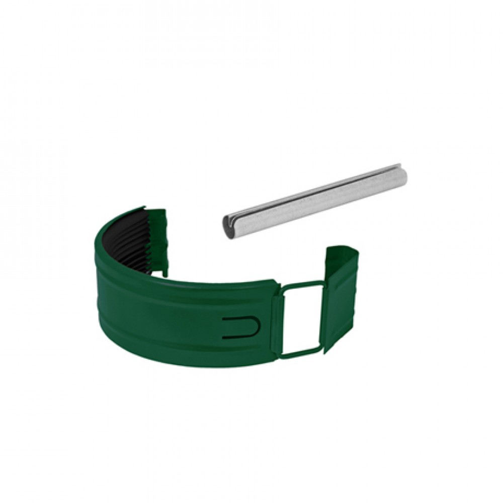 Соединитель желоба в комплекте AQUASYSTEM, D125/90 мм, PURAL RAL 6005 предназначен для соединения желобов либо желоба и угла (внешнего или внутреннего). Имеет полноценный резиновый профиль, благодаря чему дополнительная герметизация не требуется. Соединитель предотвращает протекание воды в местах соединения, а также является компенсатором расширения металла. Наличие универсального замка (пряжки) позволяет использовать его многократно и исключает возможности его поломки. Соединитель желоба поставляется в комплекте с элементом жесткости, который представляет собой трубку из оцинкованной стали, толщиной 0,7 мм. Благодаря элементу жесткости на 50% увеличивается жесткость конструкции в местах соединения желобов, а также исключается необходимость установки дополнительных крюков в местах стыка. Стыковку желобов разрешается производить в любом месте, вне зависимости от шага крюков крепления желоба.