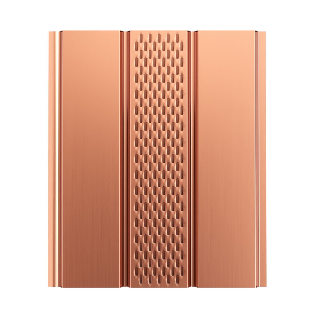 Софит AQUASYSTEM CU-медь с центральной перфорацией предназначен для подшивки карнизных и фронтонных свесов. Является элементом декоративной отделки, придавая завершенный внешний вид зданию, также обеспечивает эффективную вентиляцию подкровельного пространства с целью исключения образования конденсата.