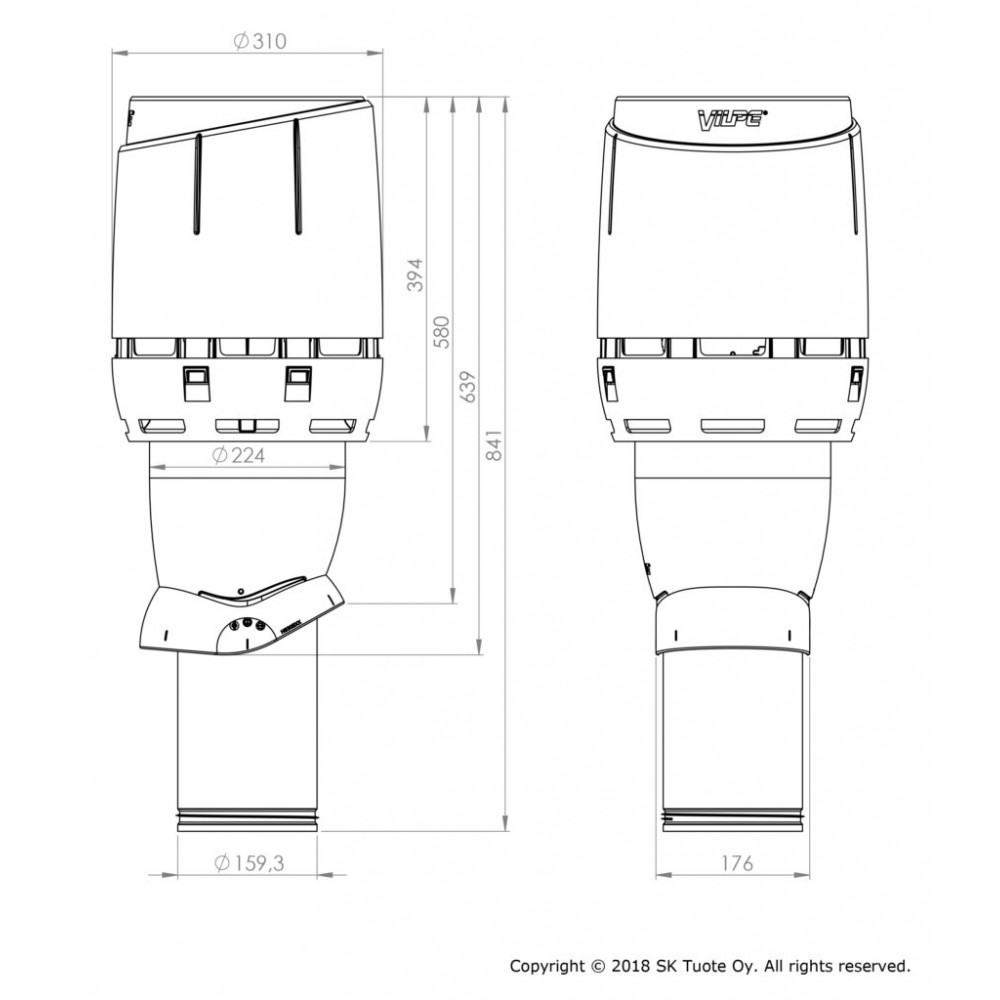 Вентиляционный изолированный выход VILPE 160P/IS/500 с колпаком серии Flow.