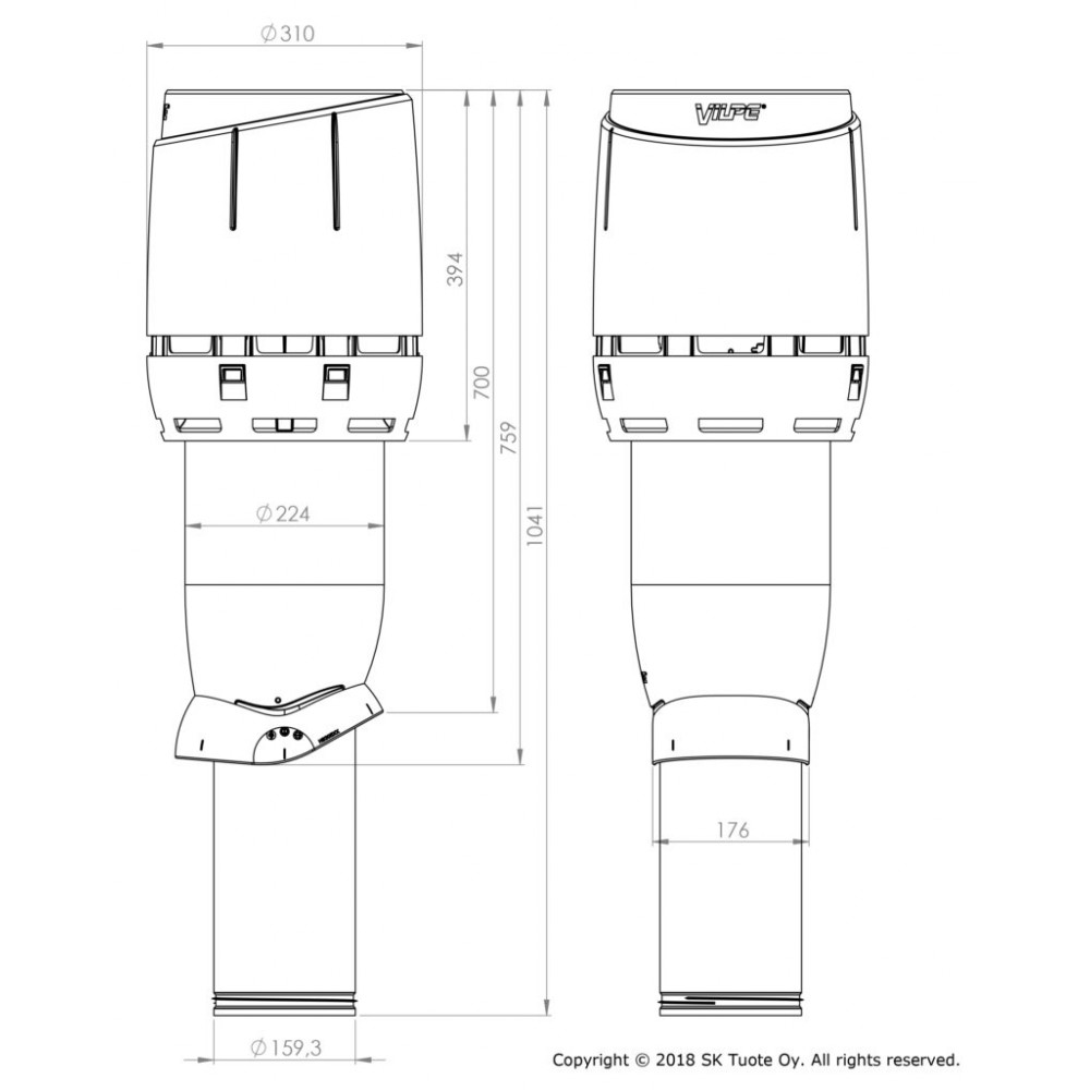 Вентиляционный изолированный выход VILPE 160P/IS/700 с колпаком серии Flow.