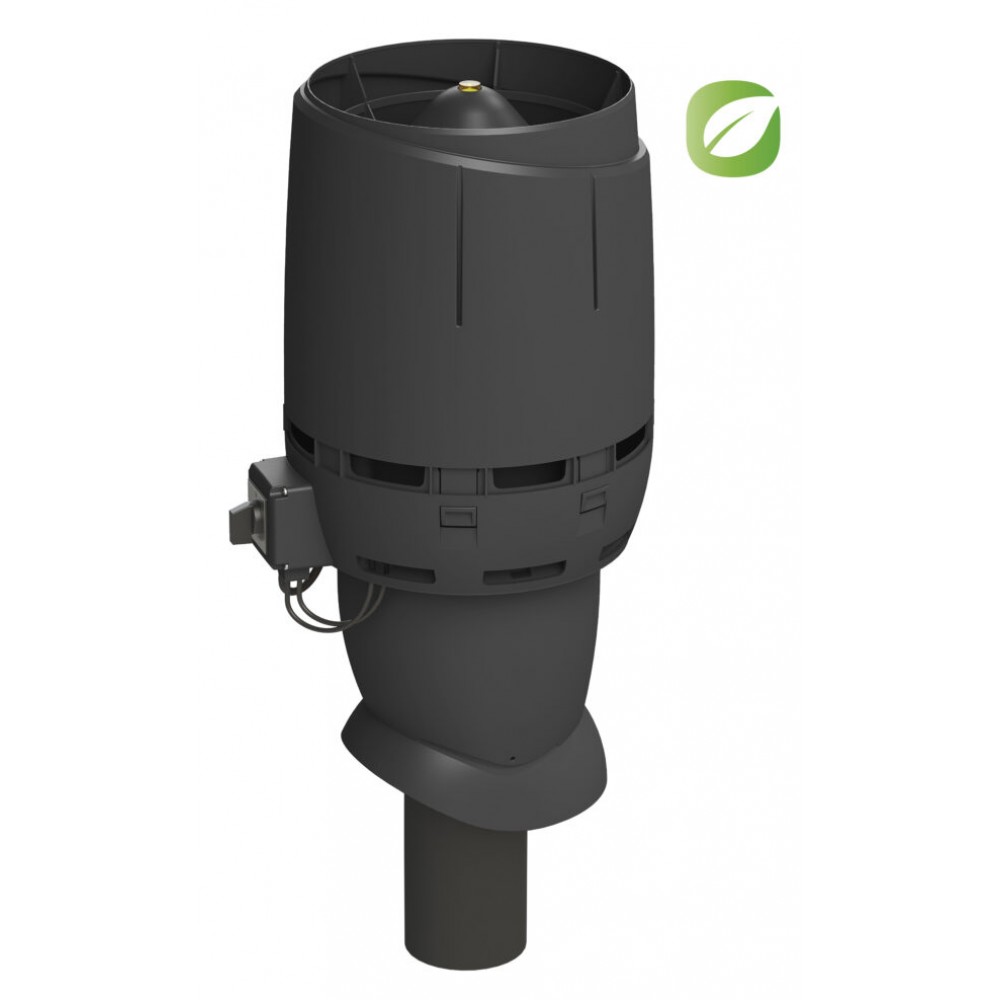 Энергоэффективный вентилятор постоянного тока ECo110P/500 для вентиляции биотуалетов и удаления почвенного газа радона с колпаком Flow. Скорость вращения плавно регулируется регулятором 0-10 V, приобретается отдельно.