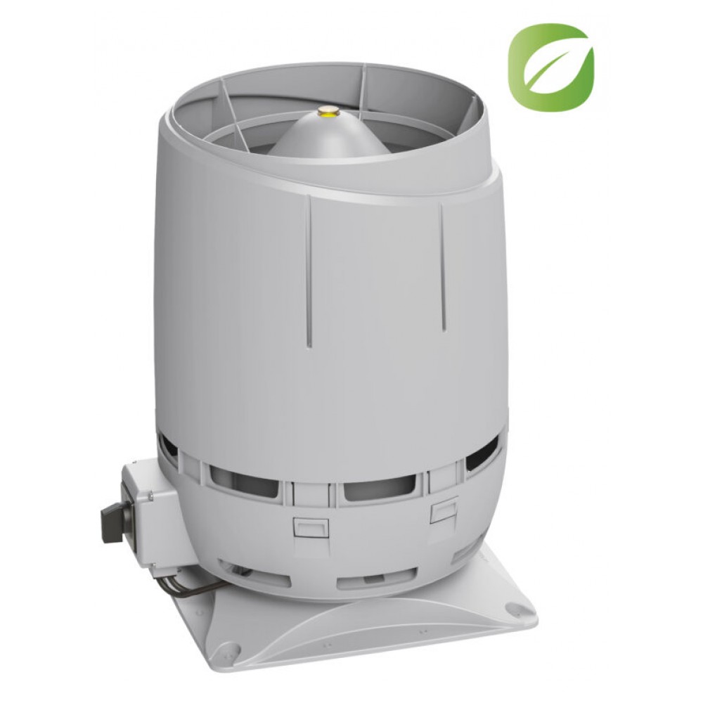 Энергоэффективный вентилятор ECo110S постоянного тока для вентиляции гаража, биотуалета и удаления почвенного газа радона с колпаком Flow. Скорость вращения плавно регулируется регулятором 0-10 V (приобретается отдельно). Совместим с изолированной трубой VILPE 110 мм или с другой трубой с наружным диаметром 160 мм.