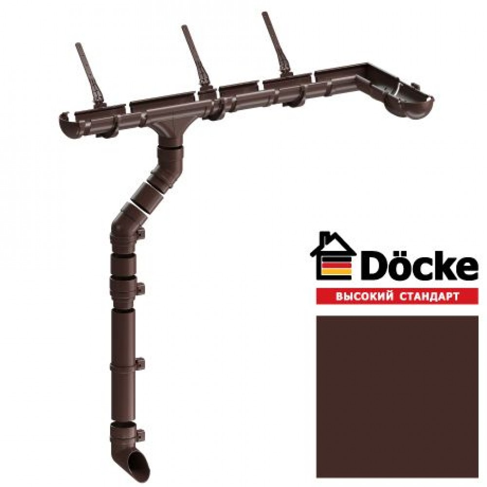 Желоб водосточный L=3 м Docke LUX, D140/100 мм, шоколад предназначен для сбора дождевой воды с кровли и служит компенсатором перелива воды на фасад здания. В зимний период может выполнять функцию снегозадержания при схождении снега с кровельного ската.